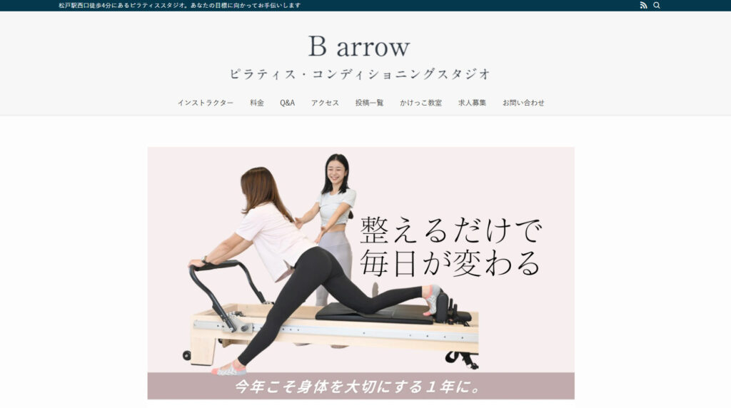 B arrowは、完全予約制のピラティススタジオです。レッスンはプライベート形式が中心で、一人ひとりの身体の状態や目的に合わせた丁寧な指導を重視しています。呼吸や姿勢、身体の使い方を基礎から確認しながら進めるため、運動経験が少ない方でも無理なく取り組めるのが特徴です。